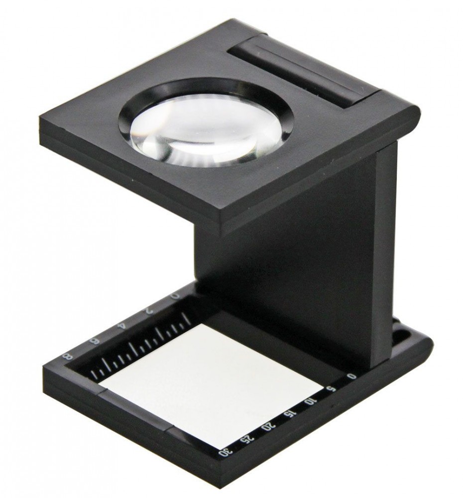 Lupa pentru timbre cu scara de masurare si marire de 5x