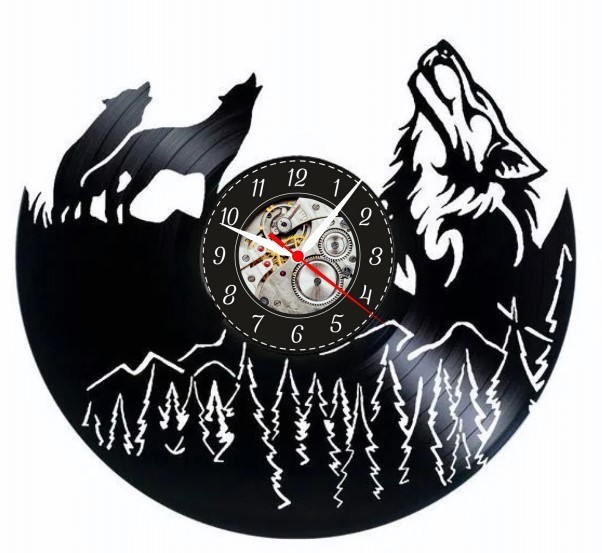 Ceas de Perete Artizanal „Spirit Sălbatic” – Lupi pe Vinil