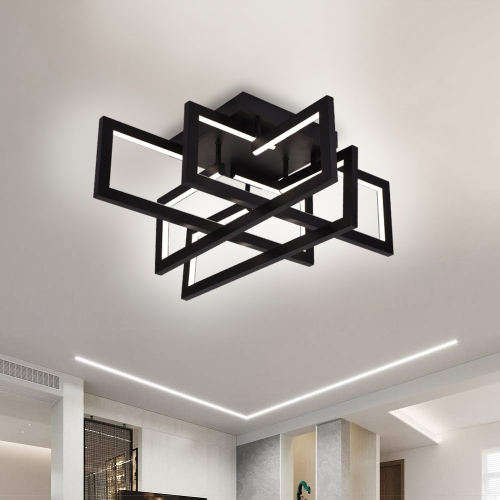 Lustra LED cu telecomanda 98W, 4 Elemente, lumina Rece/Calda/Neutra, Dimabila, Negru ModernLight Concept
