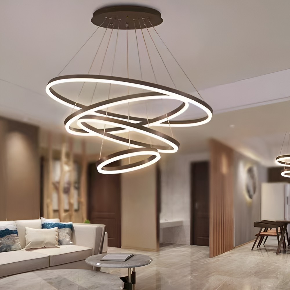 Lustra LED suspendata cu telecomanda CASIANA 130W, 4 Cercuri, lumina Rece/Calda/Neutra, Dimabila, Negru, Inaltime Reglabila ModernLight Concept