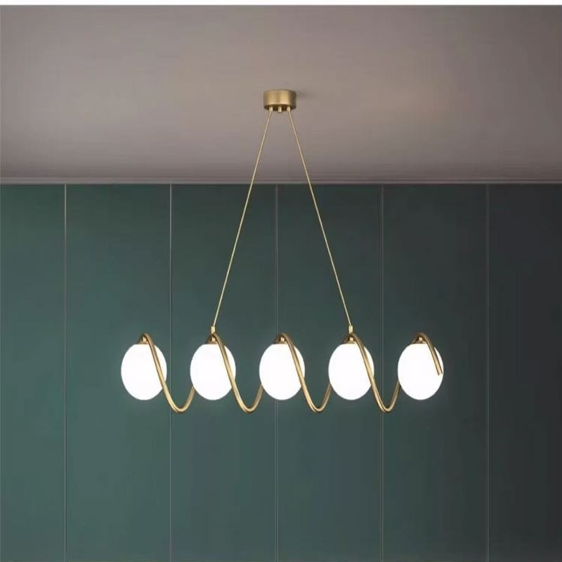 Lustra suspendata moderna, 5 globuri albe, dulie E27, corp auriu