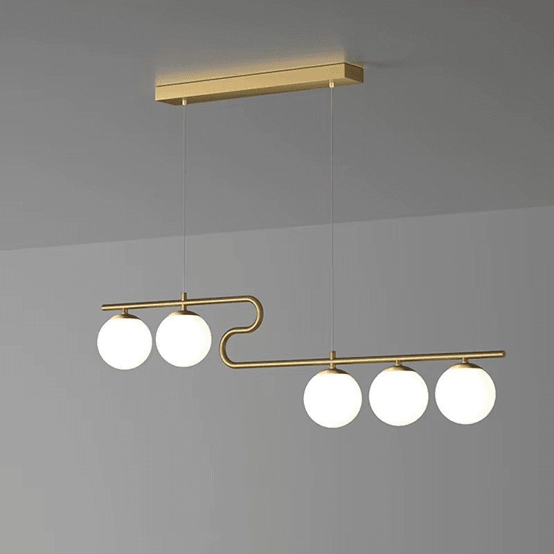 Lustra suspendata pe cablu, 5 globuri albe din sticla, dulie G9, inaltime reglabila reglabila 1.2M