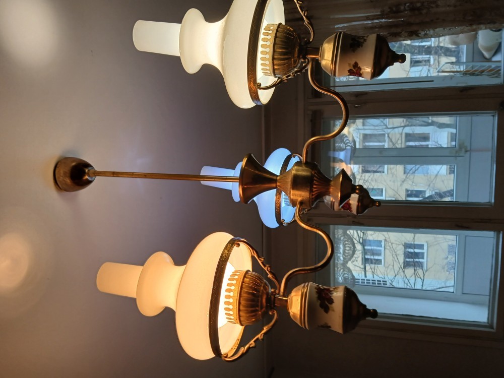 Lustra Stil Baroc, Portelan, Bronz, Sticla, Vintage, doua veioze