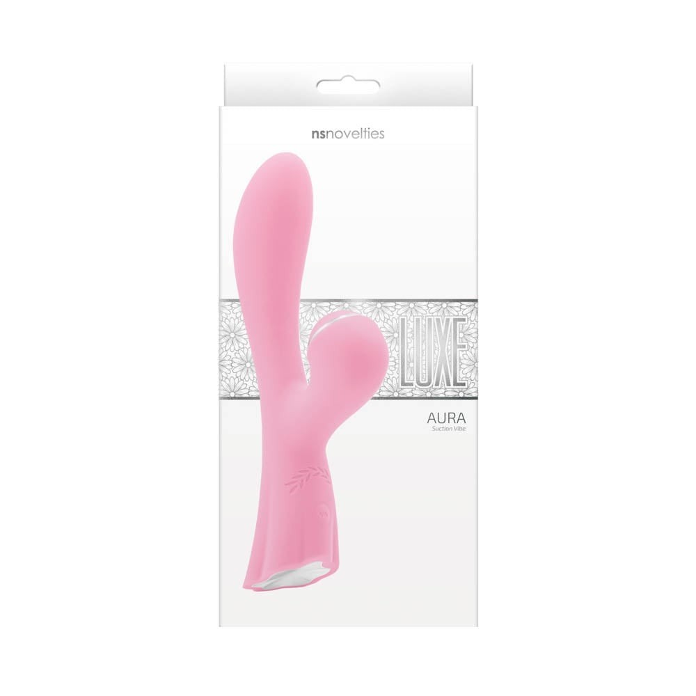 Luxe Aura Pink - Vibrator Rabbit cu Aspirator pentru Clitoris, 19,5x3,8 cm