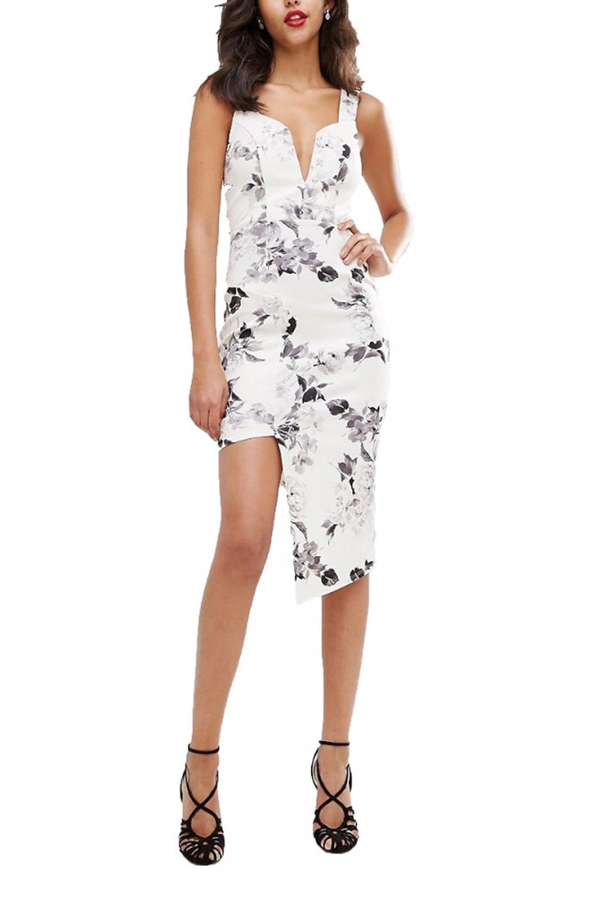 Rochie scurta pe o croaiala asimetrica si cu imprimeu floral monocrom. Rochia dispune de un decolteu adanc in V. - lungime 100 cm Produs masurat si verificat - stil casual, elegant - croi asimetric - print floral - decolteu adanc in V - bretele late - inchidere cu fermoar la spate - materia; 100%Poliester Produs fabricat in Romania
