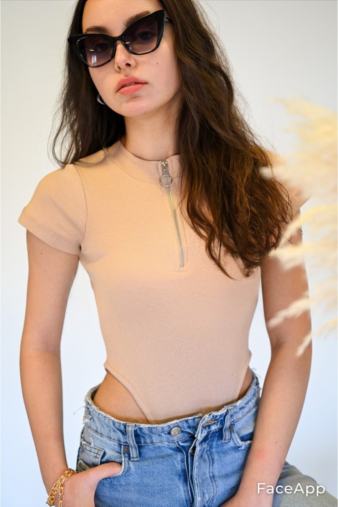 Body casual tip tricou din material raiat cu fermoar in fata si inchidere inghinala cu doua capse Produs masurat si verificat - body tip tricou - material raiat - fermoar in fata - inchidere inghinala cu 2 capse - material: 95%bumbac, 5%elastan