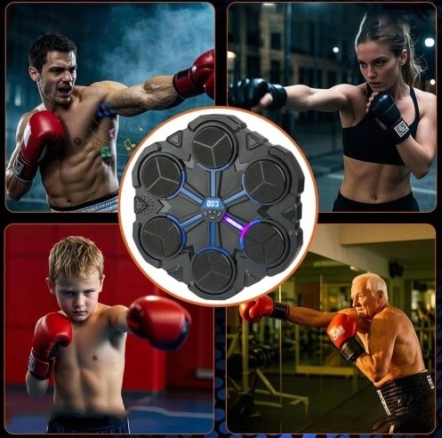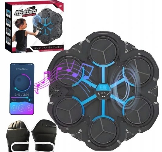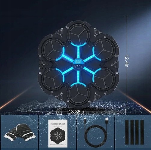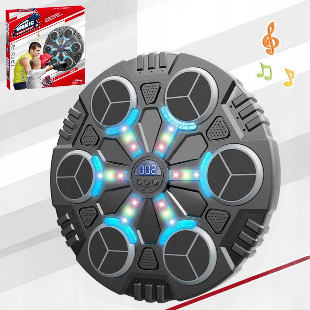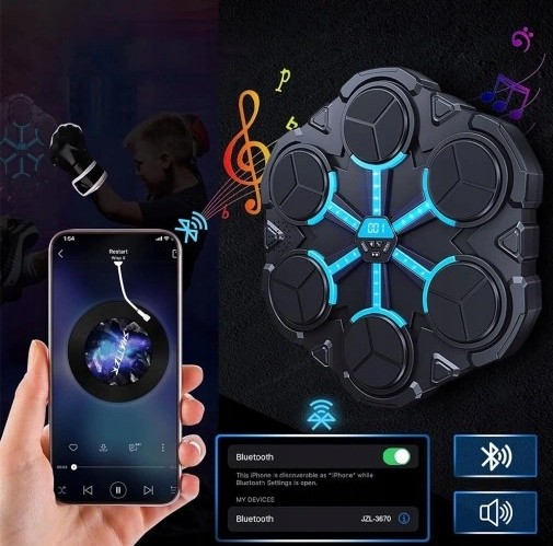 Descoperiți scutul de box interactiv cu Bluetooth și lumini LED! Acest dispozitiv combină sportul cu distracția, îmbunătățește viteza de reacție și vă permite să vă eliberați de tensiune – cu muzică, fără zgomot și fără a fi nevoie să faceți găuri în pereți.
