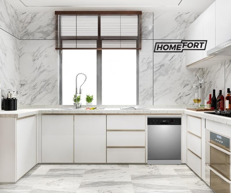 - Funcționare silențioasă: Funcționarea silențioasă a mașinii de spălat vase Homefort garantează că spălarea vaselor nu interferează cu activitățile zilnice din bucătărie.