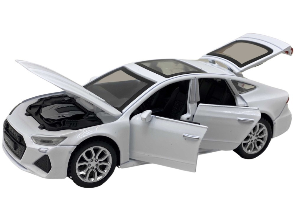 Macheta Audi A7 1:32 replica cu sunete, lumini, deschide toate usile. Macheta este realizata din metal. Masinuta deschide inclusiv capota motor si portbagajul. Luminile si sunetul se activeaza ori la deschiderea usii soferului ori cand se apasa usor pe rotile din fata. Bateriile ag13 sunt incluse si sunt sub motor. Are resort pentru rotile din spate. Este recomandat copiilor peste 6 ani sau colectionarilor.