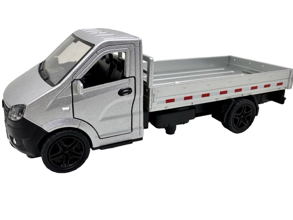 Macheta camioneta gri cu Platforma Model 1:36 Usile se Deschid Pull Back sunet si lumini