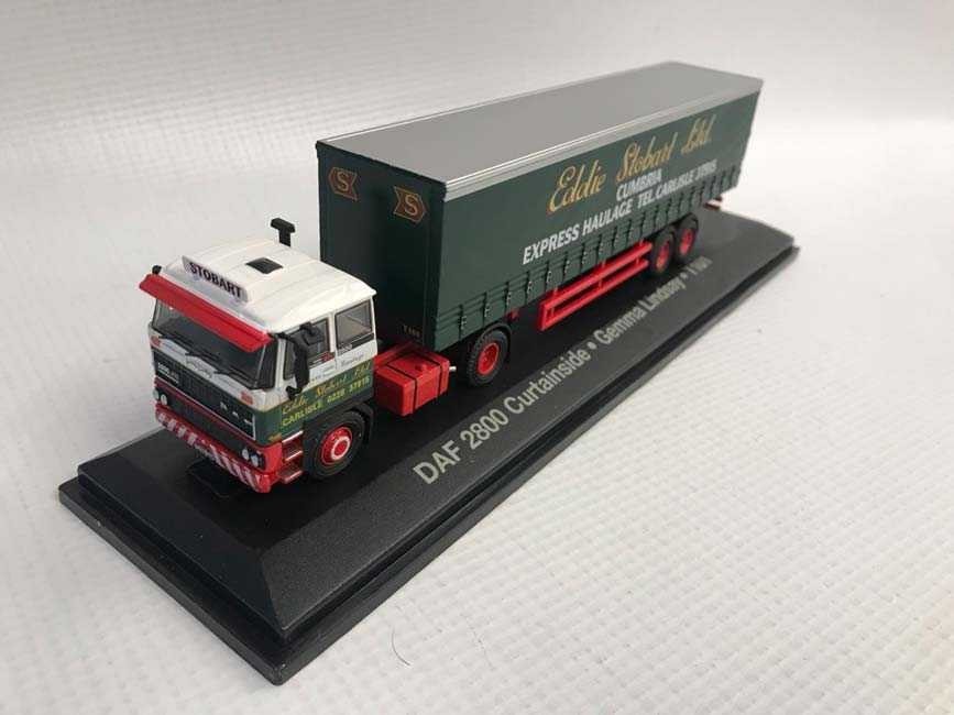 Macheta Daf 2800 curtainside stobart 1/76.Material metal si plastic. Usile nu se deschid. Este recomandat copiilor peste 3ani.