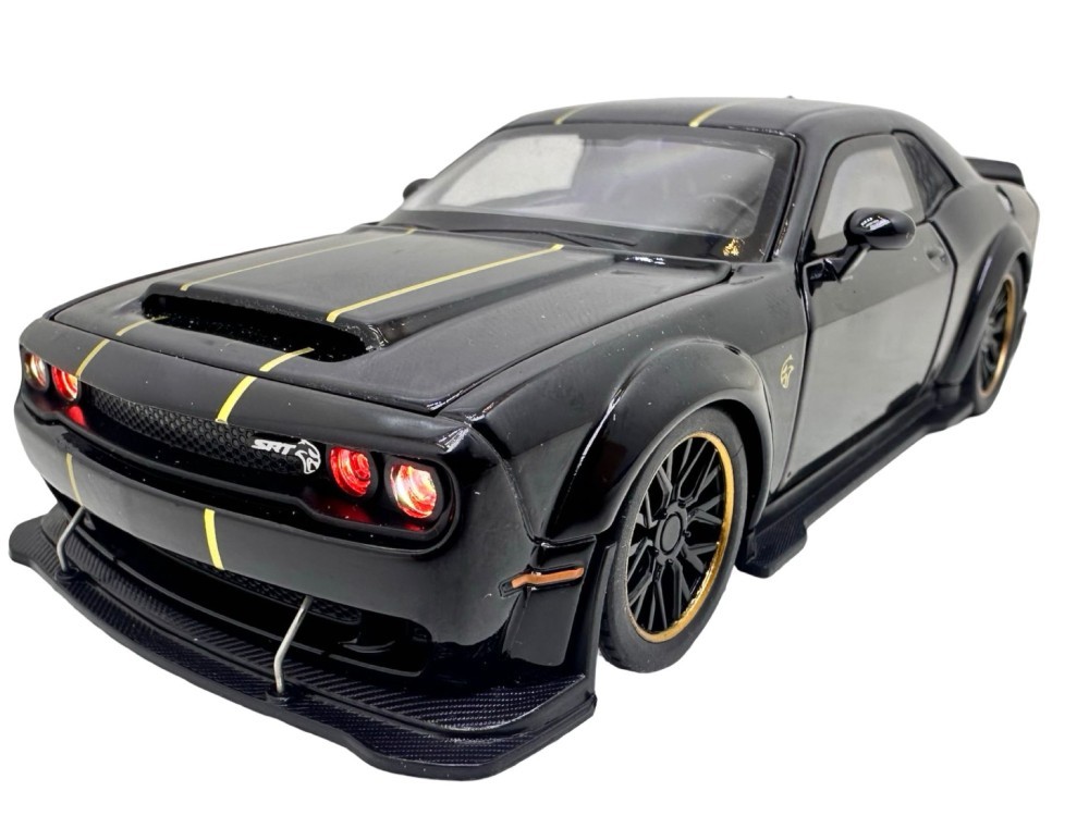 Macheta Dodge SRT Hellcat negru 1:32 – Replica metal cu lumini, usi si capota functionale