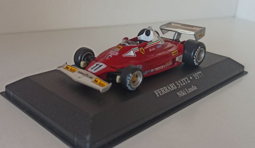 Macheta Ferrari 312 T2 pilotata de Niki Lauda campion mondial de Formula 1 1977 - produsa de Atlas la scara 1/43 in Colectia Ferrari F1, noua, in cutia originala.