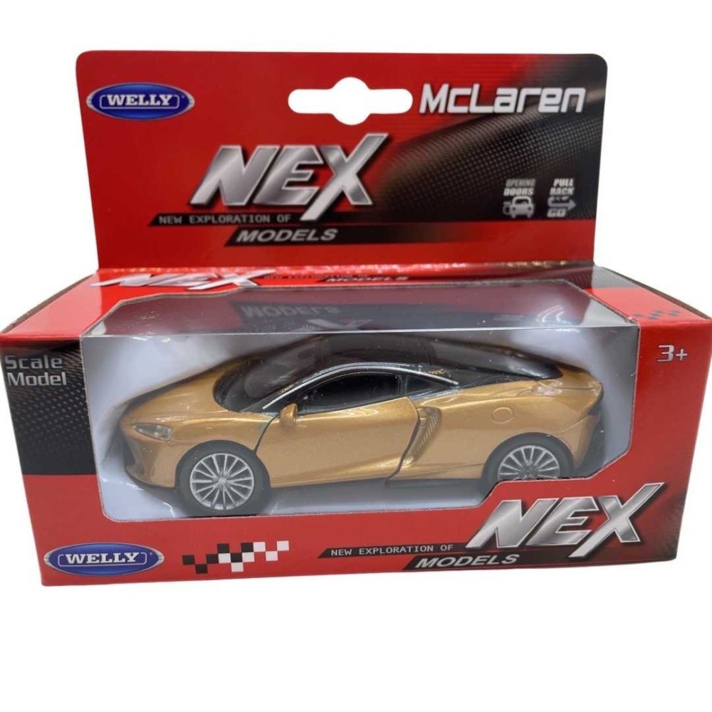 Macheta McLaren GT, auriu. Scara 1:34 Welly, se deschid usile din fata, are resort. Produsul este original cu licenta. Recomandata colectionarilor sau copiilor peste 3 ani.