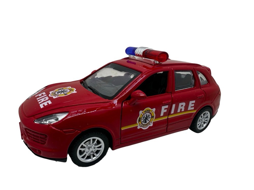 Macheta Porsche Cayenne de pompieri cu sunet si lumini, deschide usile si capotele