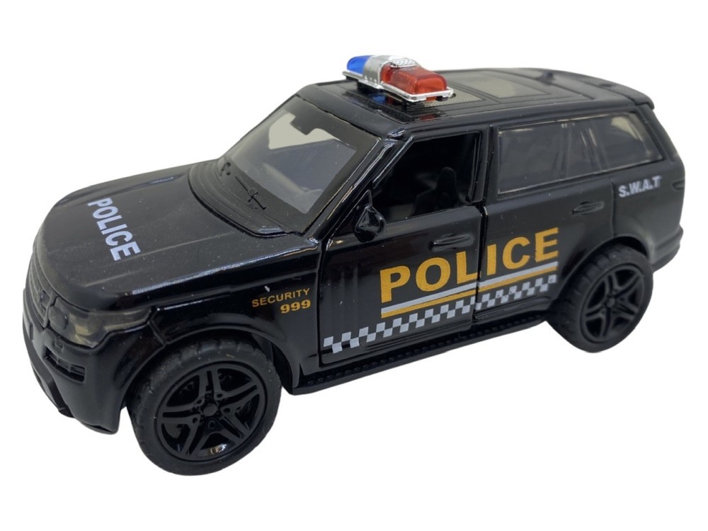 Macheta replica Range Rover de politie. Functioneaza cu baterii AA care nu sunt incluse. Usile din fata stanga dreapta se pot deschide, are resort. Masinuta are sunete si lumini. Material metal. Lungime aproximativa 11 cm. Nu are cutie proprie.