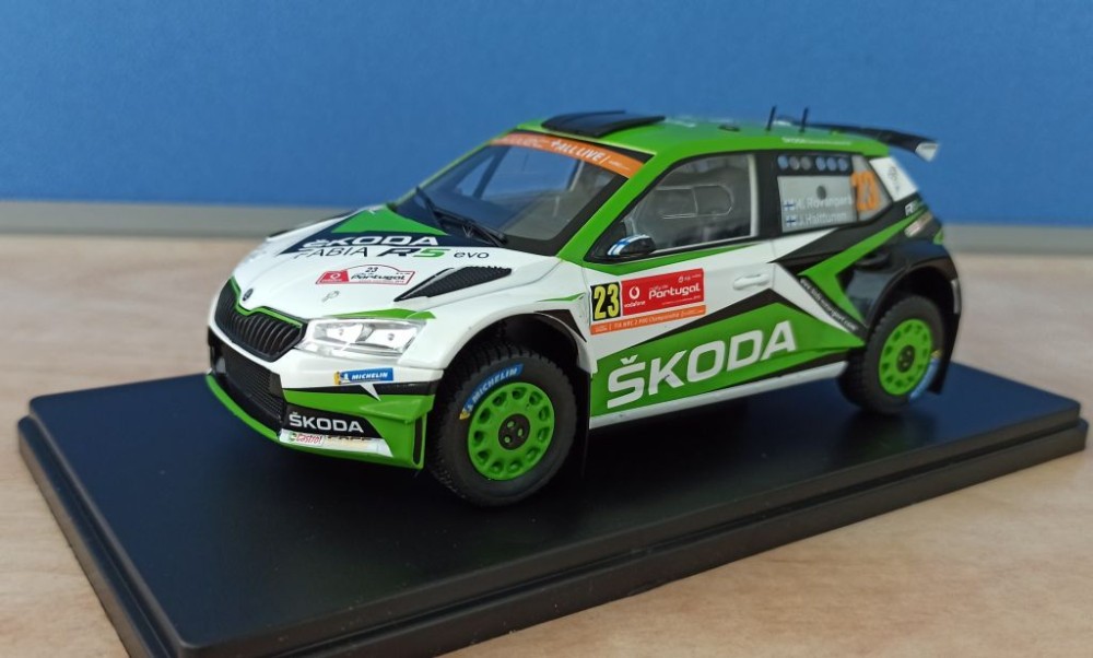Macheta Skoda Fabia R5 WRC echipaj K.Rovanpera/J.Halttunen participanti in Raliului Portugaliei 2019 produsa de IXO/Altaya la scara scara 1/24 in colectia Rally, noua, in blister.