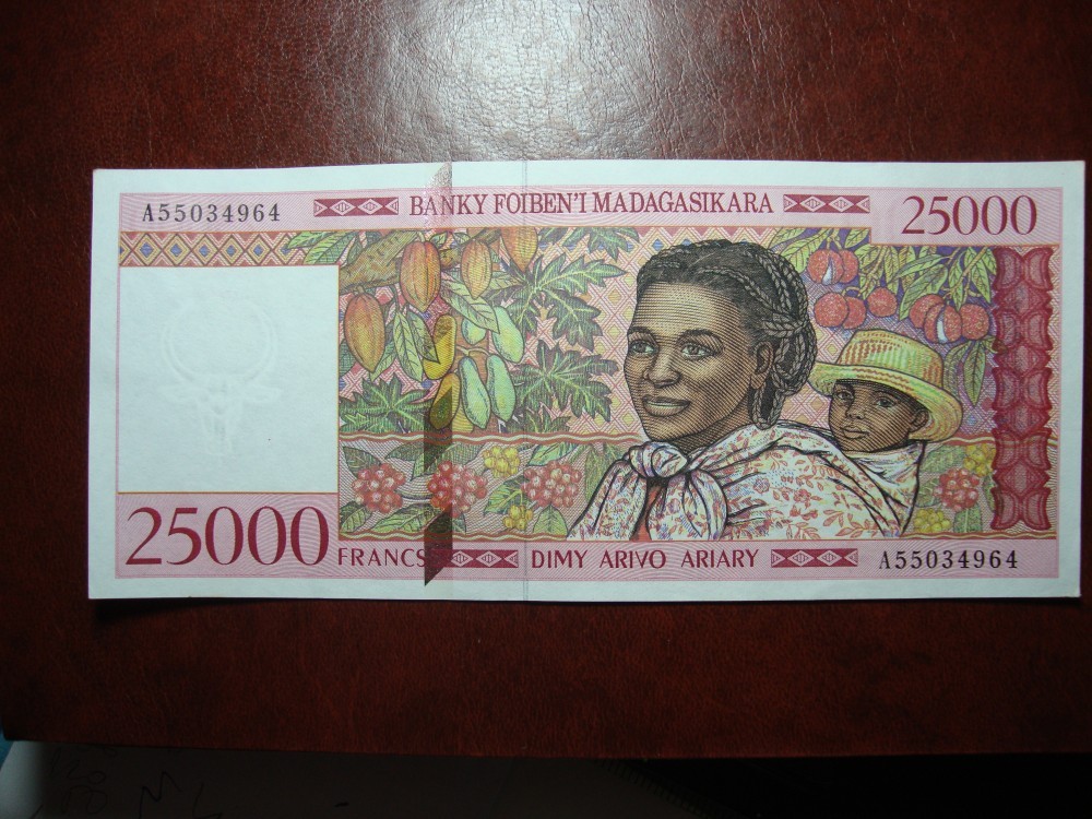 MADAGASCAR 25000 FRANCI 1998 AUNC