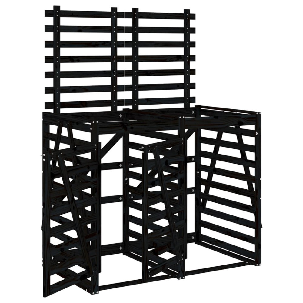 Magazie dubla depozitare cos de gunoi, negru, lemn masiv pin