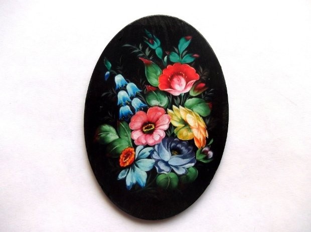 Magnet cu flori viu colorate, magnet pe lemn pentru frigider 40416. Magnet pe lemn lucrat manual. Dimensiuni – 10 cm / 7 cm.