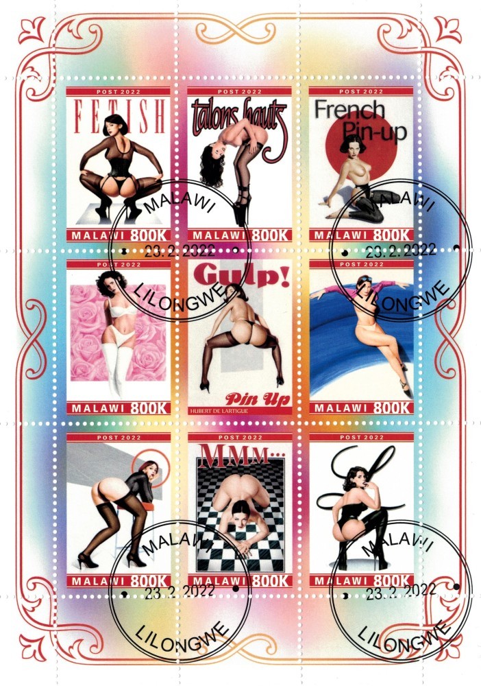 MALAWI 2022 - Arta grafica, modele pin-up (6) /serie completa