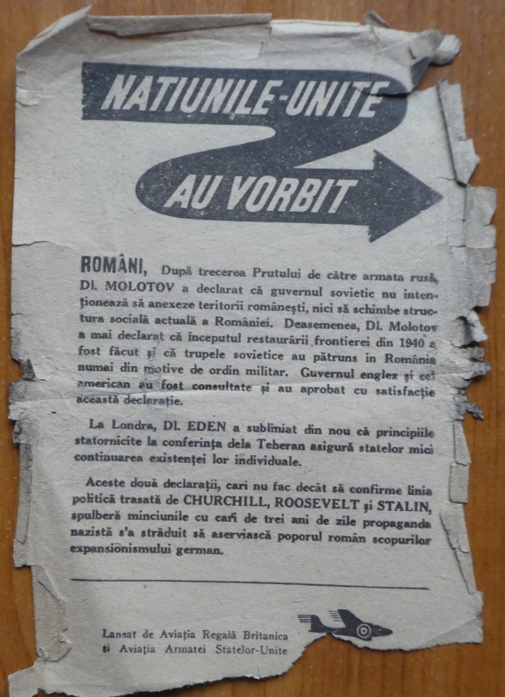 Manifest lansat de Aviatia Regala Britanica si Aviatia Statelor Unite in 1944 peste Romania: Natiunile Unite au vorbit