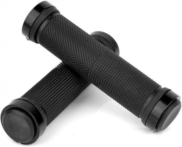 Descriere Set mansoane ghidon bicicleta. Material: plastic + cauciuc + inele blocare negre *pentru dimensiuni va rugam sa consultati imaginile produsului. *Se livreaza set de 2 buc .
