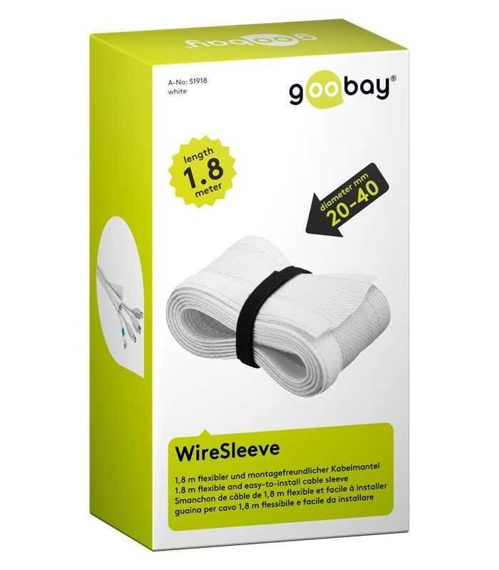 Manson organizator cabluri alb 1.8m flexibil 20-40mmn Goobay. WireSleeve Manșon de cablu flexibil și ușor de instalat de 1,8 m furtun textil flexibil cu diametrul de 20 mm - 40 mm lungimea de 1,8 m poate fi reglata prin taiere cu foarfeca închiderea cu cârlig și buclă facilitează instalarea Specificatii tehnice Culoare alb Lungime 1800 mm Diametru 40 mm Domeniul de aplicare a limbii ambalaj de, fr, it, en.