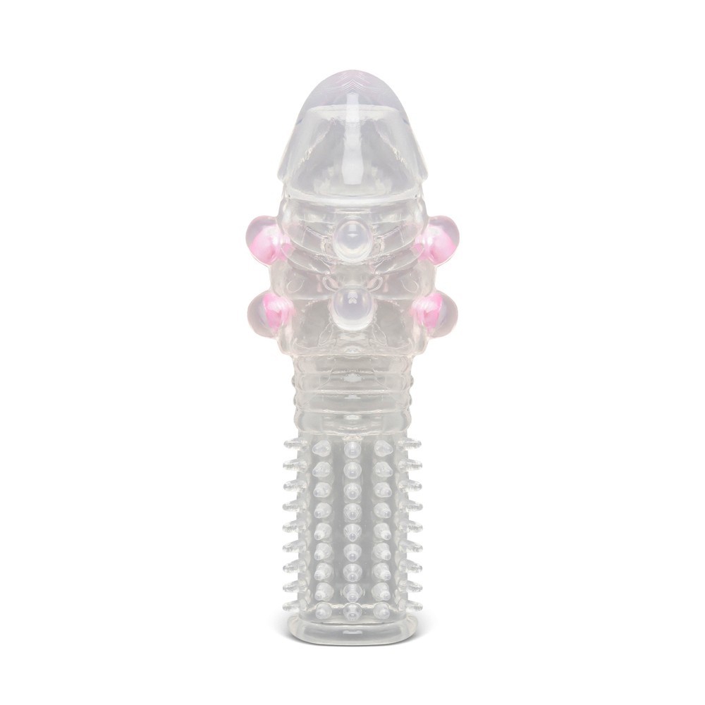 Manson penis prevazut cu striatii, transparent. Este realizat din material tip jelly, moale si transparent, se muleaza usor, acoperind inclusiv varful penisului. Este prevazut cu bilute si denivelari pentru a oferi placere intensa cu fiecare penetrare. | Material: TPE | Lungime: 13 cm | Diametru: Elastic | Culoare: Transparent