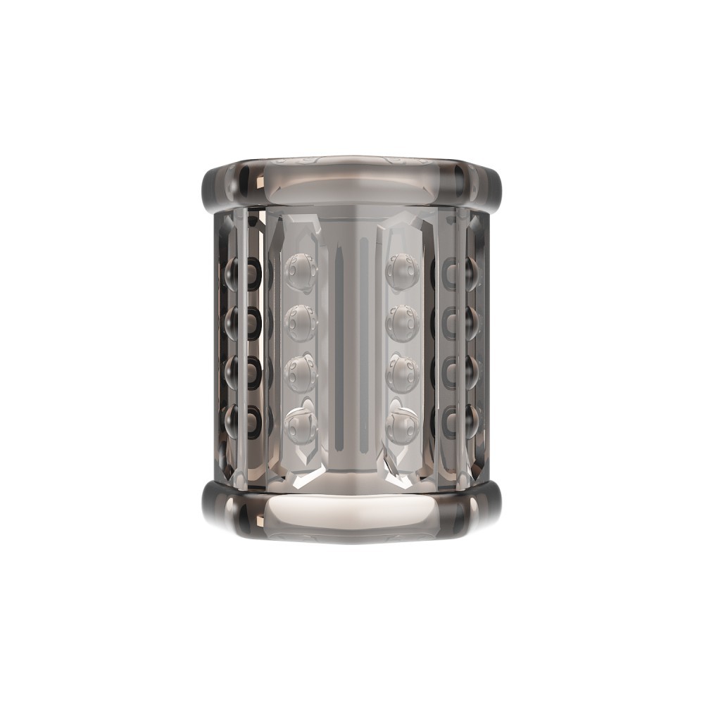 Manson stil inel lat pentru penis, confectionat din material elastic si matasos, durabil in timp si placut la atingere. Design-ul transparent este prevazut cu varf decupat, forme evidentiate si modele geometrice dispuse pe toata suprafata lui. Acestea stimuleaza intens peretii vaginali si ofera o experienta interesanta in timpul actului sexual. Se poate folosi pentru cuplurile care vor sa aduca un plus de noutate in timpul actului sexual, stimuland ambii parteneri prin faptul ca poate prelungi actul sexual. Mai exact, mansonul ajuta la mentinerea erectiei si la intarzierea ejacularii prin faptul ca ar constrange fluxul sanguin in punctele pe care este fixat. Este accesoriul perfect pentru barbatii care doresc per ansamblu imbunatatirea actului sexual. Pentru un confort sporit, se recomanda folosirea produsului cu un lubrifiant pe baza de apa. Se igienizeaza inainte si dupa folosire cu solutii speciale pentru jucariile erotice. Dimensiunile exacte se regasesc in imaginile alaturate. | Material: TPR | Lungime: 5.5 cm | Diametru: 3 cm | Culoare: Negru transparent