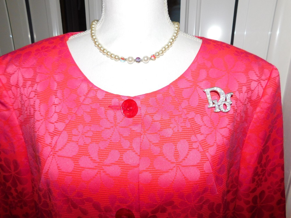 Mantou nou, deosebit , Danemarca , material brocart , imprimeu si colorit deosebite, nasturi sidef, buzunare exterioare aplicate , captusit , elegant , brosa noua cadou,46 cm umeri 60 cm bust 55 cm talie, 92 cm lungime 60 cm lungim mineci .