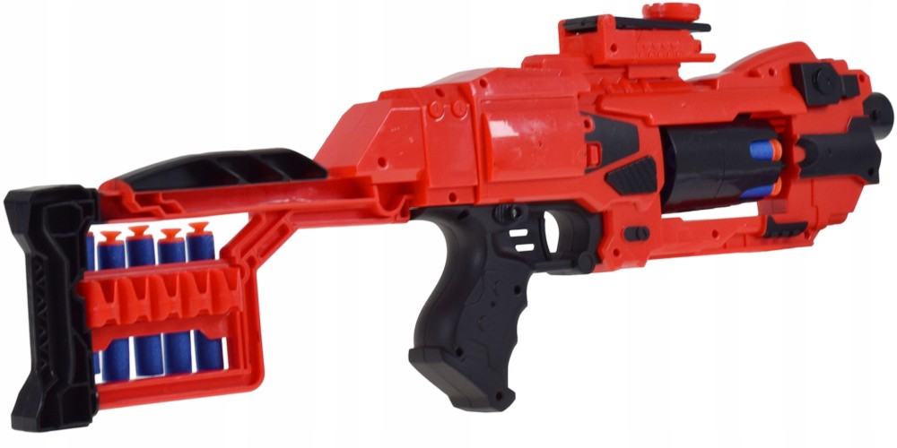 - Muniție: săgeți din spumă de 7 mm cu ventuze