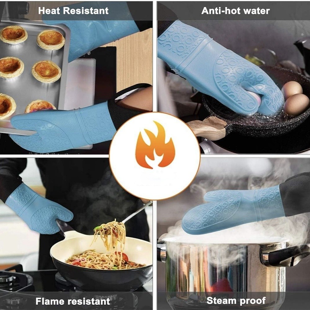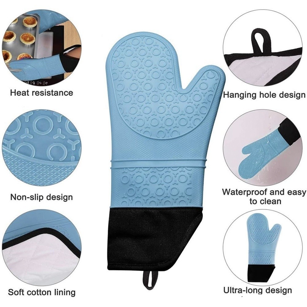 Manusa de bucatarie Pufo Simple din silicon pentru gratar sau cuptor, captusita, 37 cm, albastru/negru