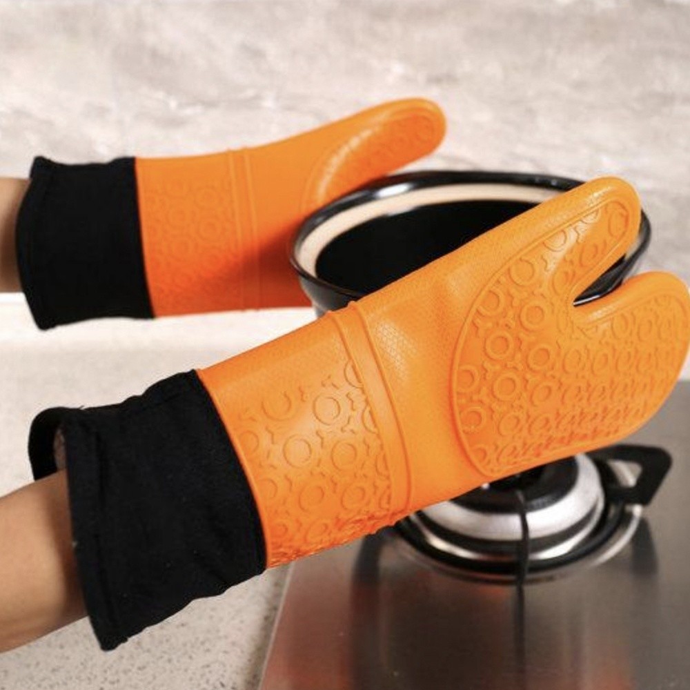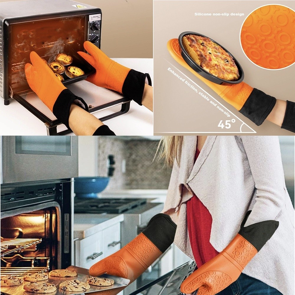 Manusa de bucatarie Pufo Simple din silicon pentru gratar sau cuptor, captusita, 37 cm, portocaliu/negru