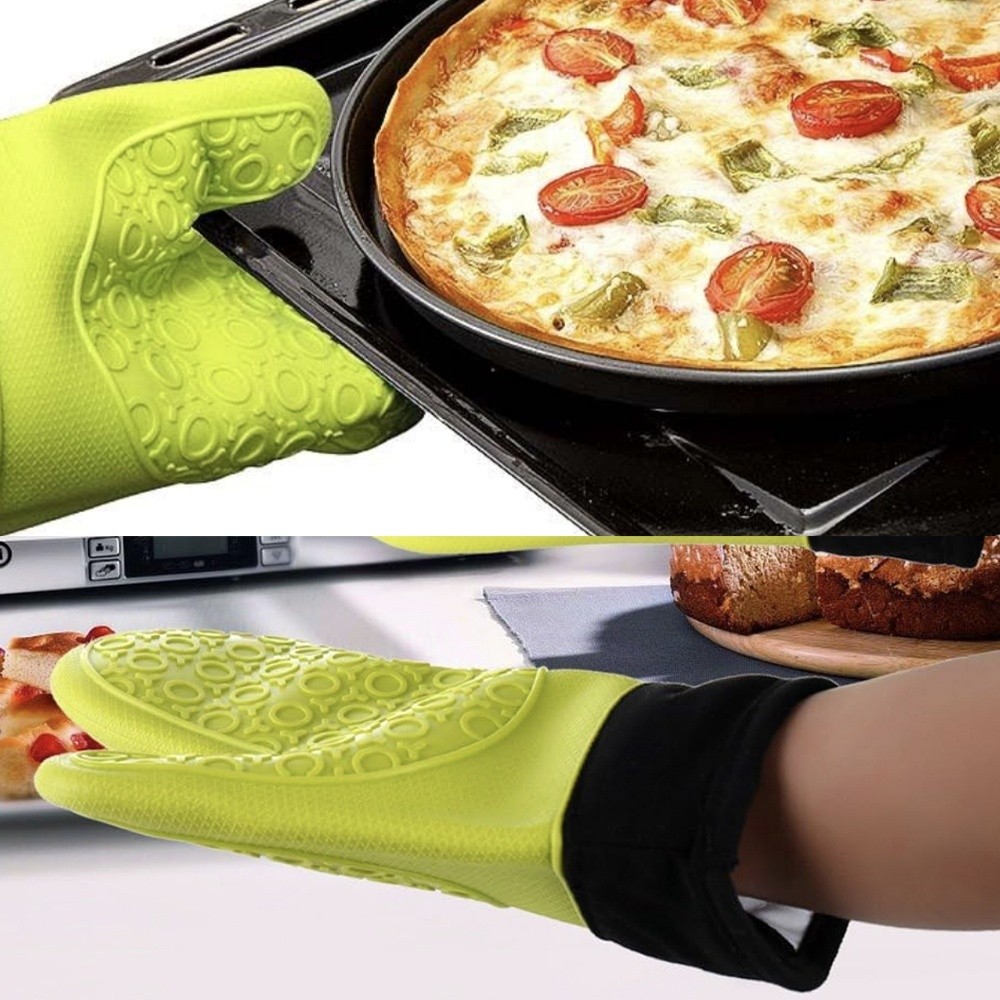 Manusa de bucatarie Pufo Simple din silicon pentru gratar sau cuptor, captusita, 37 cm, verde/negru