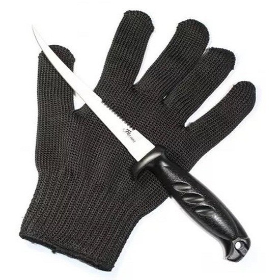 Manusa Filfishing pentru Filetat Negru<br><br>Manusa speciala pentru curatarea si filetarea pestilor, confectionata din fibre textile cu insertii de otel. Are rol de protectie a mainilor si mai ales a degetelor impotriva taieturilor accidentale. Se poate folosi pentru ambele maini.<br><br>Caracteristici:<br><br> Tip accesoriu: manusa pentru filetat;<br> Material: fibre textile cu insertii de otel;<br> Protejeaza mainile si degetele de taieturi;<br> Poate fi folosita cu ambele maini;<br> Culoare: negru.<br><br>