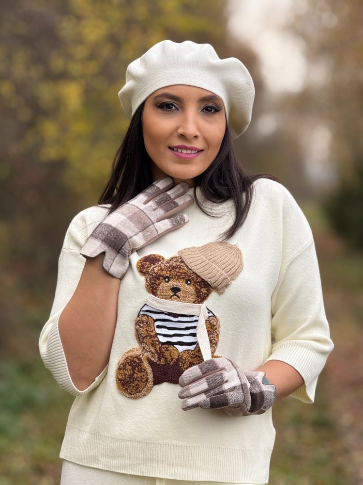 Într‑una din acele dimineţi în care aerul rece te îndeamnă să‑ţi pui o pereche de mănuşi, alege ceva care să îţi aducă mai mult decât căldură: să îţi aducă bucurie. Aceste mănuşi crem cu carouri şi inserţie tactilă sunt acel gest simplu care spune «m‑am gândit la mine». Nuanţa blândă de crem luminează chiar şi zilele mai gri, iar carourile adaugă o textură ce atrage priviri fără să strige.