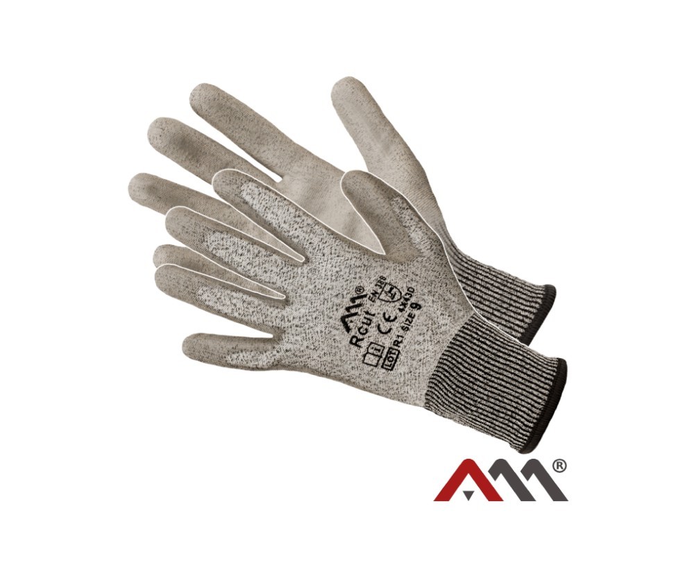 Manusi de protectie tricotate, fara cusaturi, rezistente la taiere, de culoare gri, confectionate din material special rezistent la taiere (PE-UHMW), cu fire albe si negre, acoperite cu poliuretan gri pe palma si cu manseta.Nivel de protectie la taiere D (conform standardului EN 388). Concepute pentru lucrari generale, asamblare, prelucrarea metalelor, lucrari de precizie si lucrari electrice oriunde este necesara protectie la taiere. Prezinta o rezistenta ridicata la abraziune si rupere.Se potrivesc perfect pe mana, oferind dexteritate si o prindere sigura, in timp ce acoperirea cu PU reduce patrunderea murdariei.. Parametri de protectie conform EN 388:. rezistenta la abraziune – 4,. rezistenta la taiere – X,. rezistenta la rupere – 4,. rezistenta la perforare – 3. rezistenta la taiere conform EN ISO 13997 - D