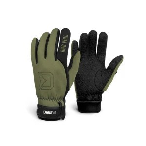 Manusi Delphin RWR Full XLManusile din neopren Delphin RWR Full va vor tine de cald chiar si in cele mai friguroase zile. Aceste manusi sunt fabricate cu atentie pana la cel mai mic detaliu astfel incat sa duca la alt nivel partidele dumneavostra de pescuit din sezonul rece. Un avantaj incontestabil este suprafata cauciucata a palmei care este prevazuta cu un strat antialunecare cu un design inovativ sub forma logoului Delphin. Aceste manusi nu sunt prevazute cu deschidere pentru degete astfel incat apa rece nu va patrunde in interiorul lor, aspect care cu siguranta va fi apreciat de catre pescarii de crap in special. Pentru un plus de caldura si pentru a preveni intrarea apei pe langa incheietura mainii, aceste manusi sunt prevazute cu cusaturi speciale cauciucate dar si cu o chinga de strangere din Velcro. Combinatia de culori verde si negru a manusilor RWR Full o face potrivita atat pentru pescuit dar si pentru alte activitati in aer liber.