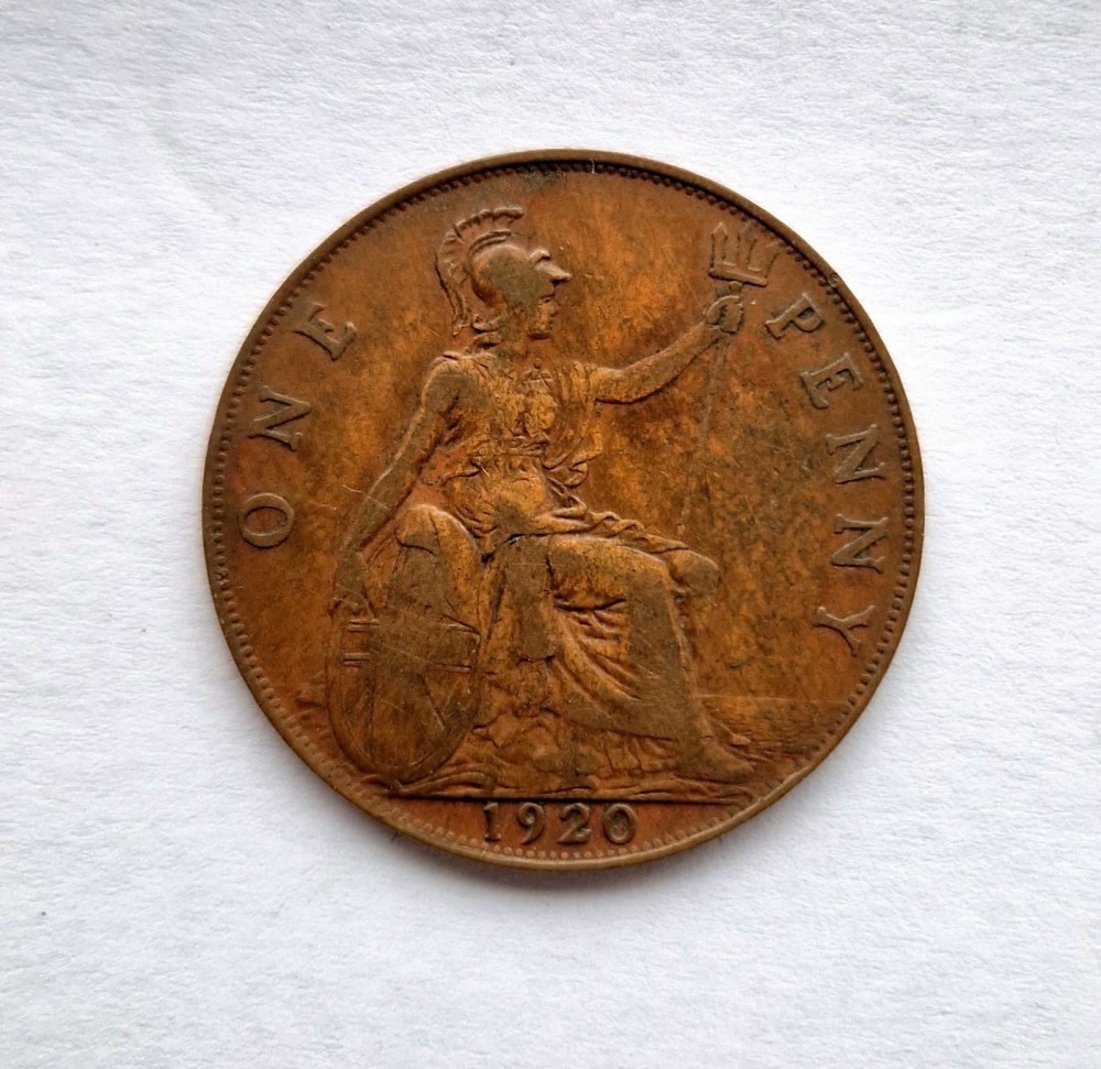 Marea Britanie 1 Penny 1920 moneda bronz km # 810 George V