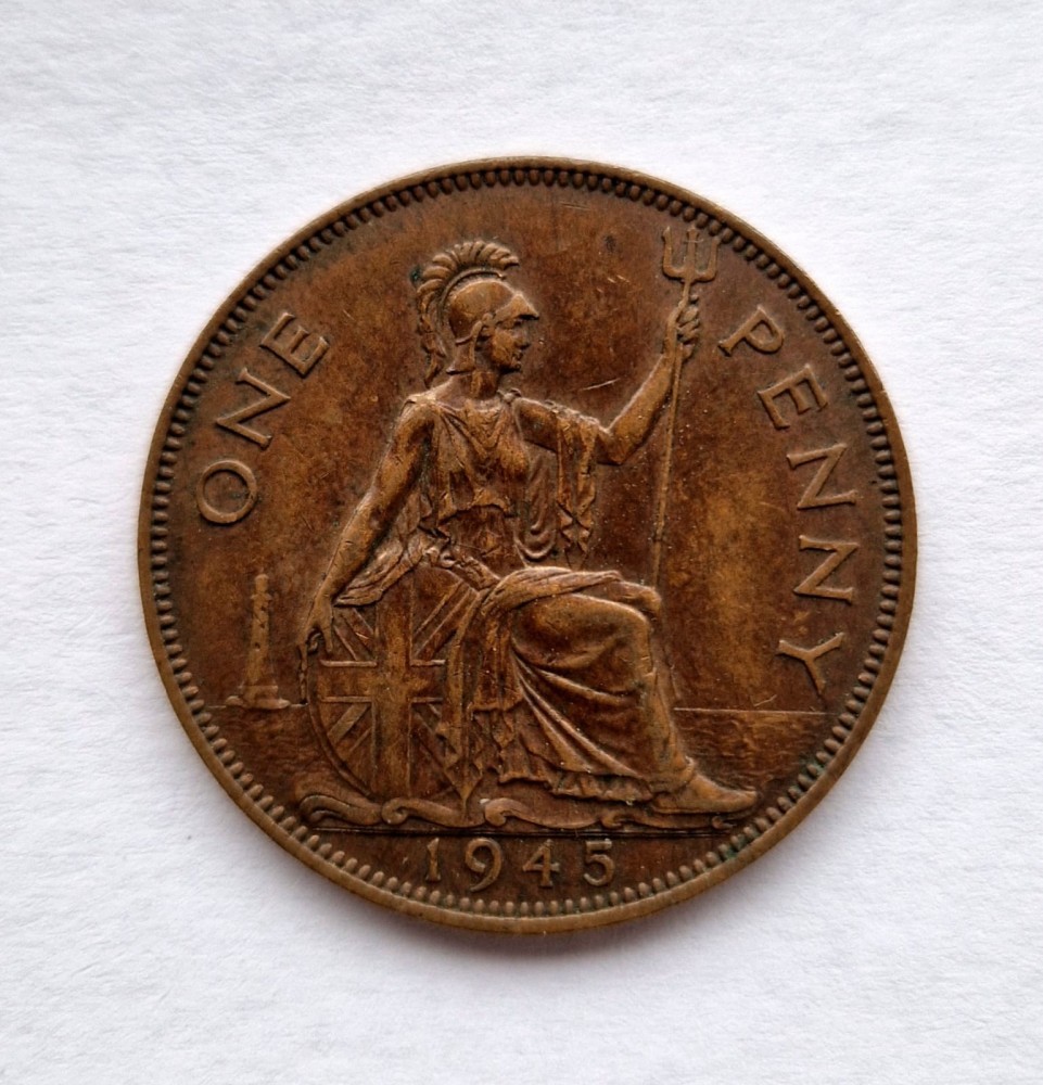 Marea Britanie 1 Penny 1946 moneda bronz km # 845 George VI