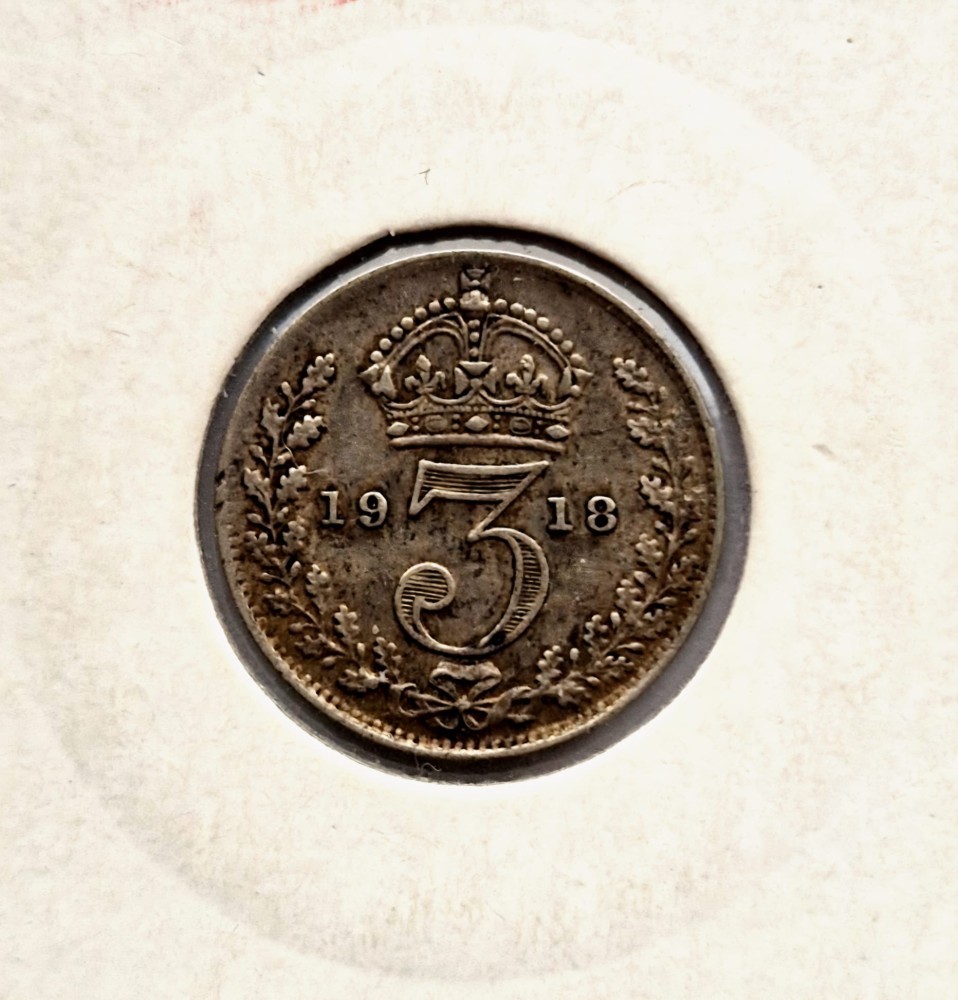 Marea Britanie 3 Penve 1918 moneda din argint km # 813 George V