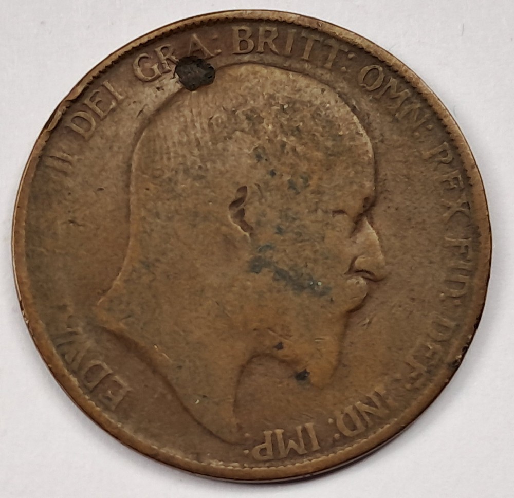 Marea Britanie, One Penny 1906, Edward VII, prezinta lovitura in profunzime