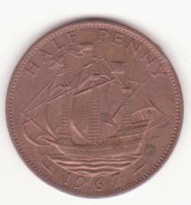 Marea Britanie 1/2 penny 1967, bronz, stare bună.