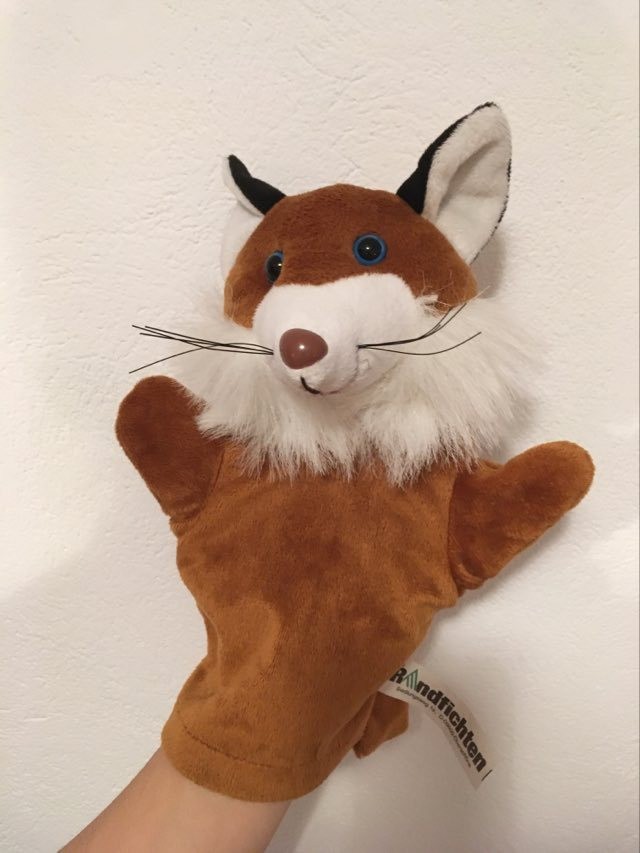 * Marioneta vulpe, vulpita, papusa de mana, teatru papusi copii