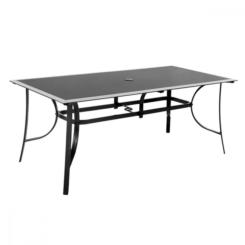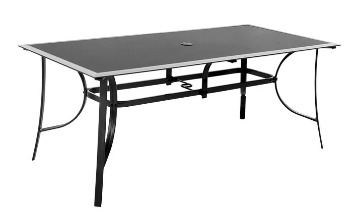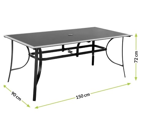 Structura mesei de grădină este fabricată din aluminiu. Blatul este fabricat din sticlă securizată de 5 mm , rezistentă la zgârieturi minore. Materialele folosite asigură rezistența la intemperii. Masa modernă de grădină este concepută pentru 6 persoane , ceea ce vă permite să folosiți mobilierul în timpul întâlnirilor cu cei dragi. Întregul lucru este proiectat la înălțimea potrivită, astfel încât să poți mânca confortabil. Avantajul este orificiul încorporat în parasolar, astfel încât utilizarea parasolarului permite umbrirea uniformă a tuturor utilizatorilor.