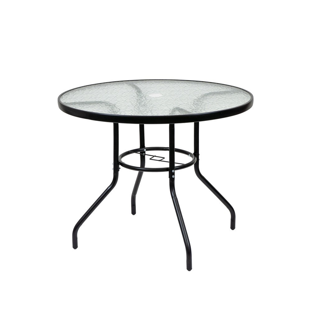 Masă de grădină Ordino cu cadru metalic și sticlă, neagră