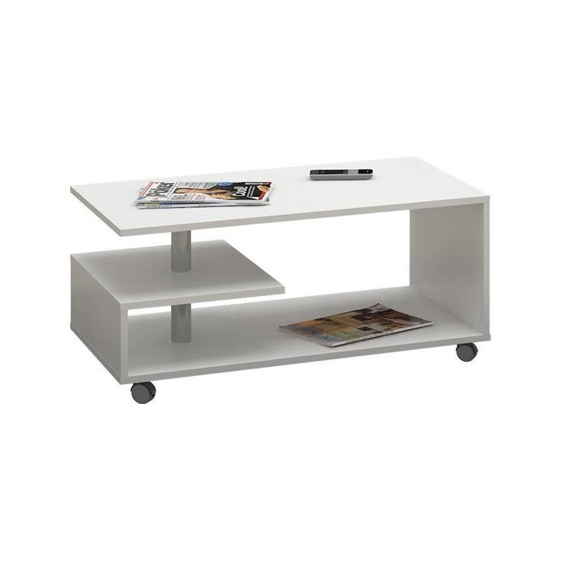 Masa de cafea, placa laminata, pe roti, alb, 90x51x40 cm, Vini
