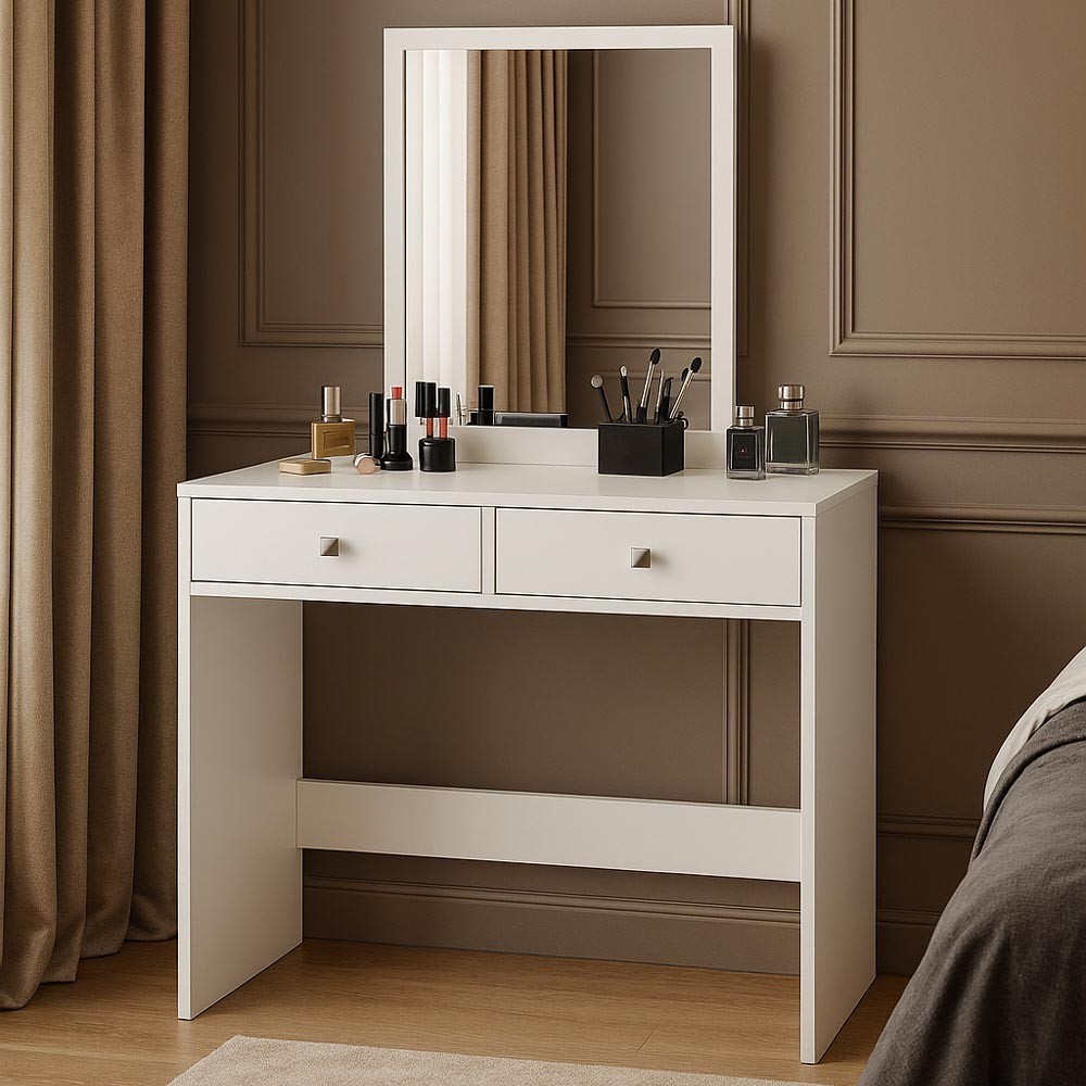 Masa de toaleta si machiaj Mega cu 2 sertare și oglinda, 100x50x134 cm, finisaj alb