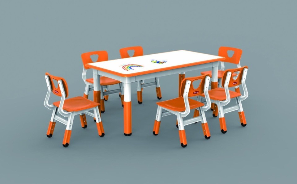 Material : Blat din PAL melaminat de 18mm, culoare alb, se poate scrie pe blat cu marker special, cant ABS, colturi rotunjit, rezistent la apa si uzura. Picioare din plastic cu protectii reglabile.